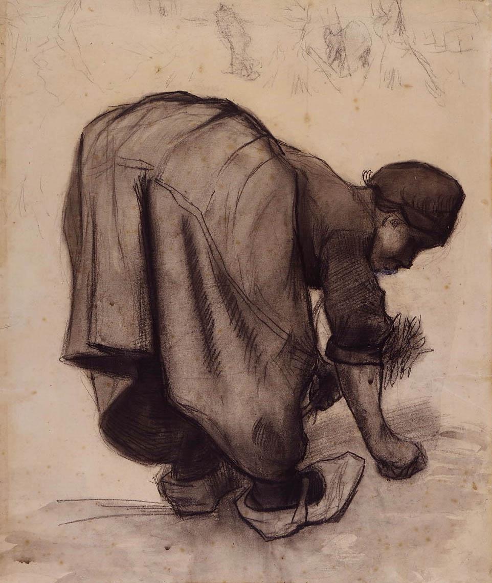 Arenlezende boerin, tekening van Vincent van Gogh, gemaakt