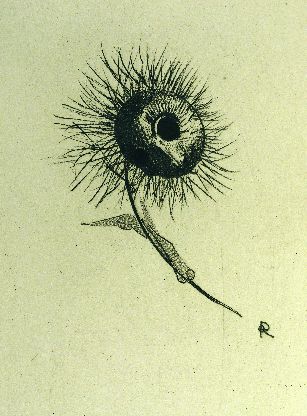 van het kwaad). Gravure van Odilon Redon, 45 x 31,5 cm, uit een